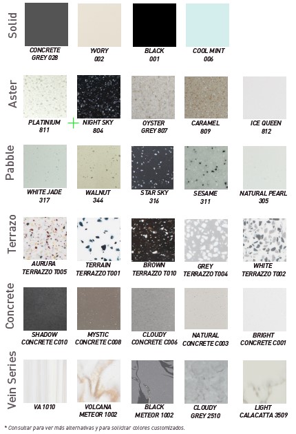 Productos para proyectos residenciales, incluyendo cubiertas de cuarzo y piedra, mobiliario modular, lavaplatos y accesorios. Diseñados para durar y ser funcionales, productos que ofrecen elegancia y practicidad a tus espacios.
