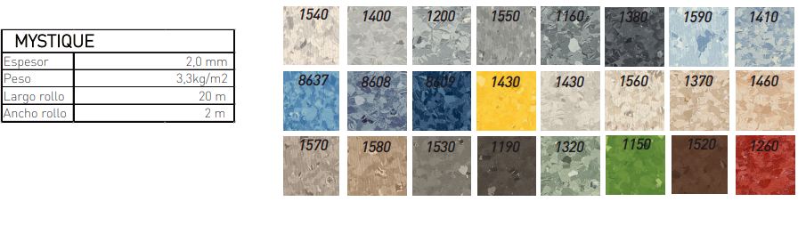 Disponible en 24 colores armoniosos, tiene una apariencia tonal no direccional, con una decoración de chips de duotono con chips de reflejos tonales marmolados.